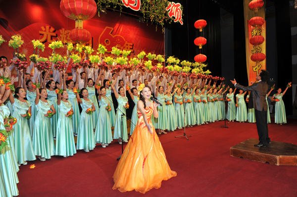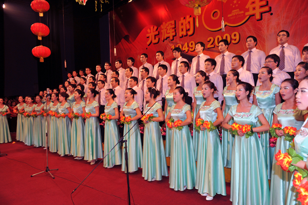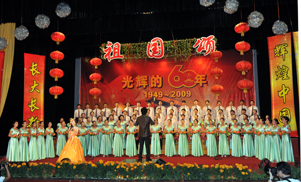 本网讯(记者 天一)9月29日晚,东校区大礼堂华灯绽放、流光溢彩,洋溢着浓浓的节日喜庆,学校庆祝建国60周年教职工大合唱展演在此隆重举行,师生欢聚一堂,为祖国华诞纵情高歌。 公司教职工经过近一个月的精心排练,向全校师生奉献了一首《山丹丹花开红艳艳》,赢得了现场雷鸣般的掌声,在全校三十多个参赛队伍中脱颖而出,并以优异成绩喜获一等奖。 (责任编辑 周芳)