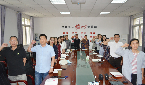 本网讯(记者 吴秀丽)“我志愿加入中国共产党,拥护党的纲领,遵守党的章程……”面对鲜红的党旗,今天(9月16日)上午,机关一支部主题党日活动现场,全体党员举起右手庄严宣誓。