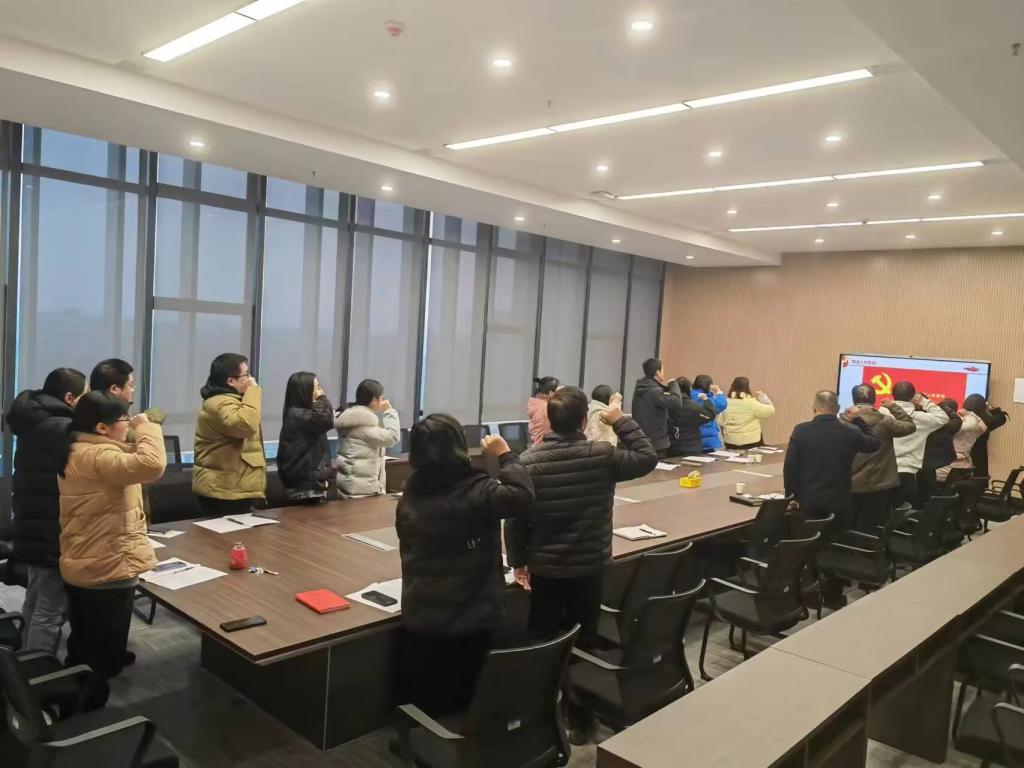 20231220日下午,机关二支部在图书馆512室开展了12月政治理论学习、主题党日活动,支部书记卢红艳主持会议。经理李兴祥、副经理向宇及党委副书记李则俊以普通党员身份参加活动,郭珍珍领誓入党誓词。