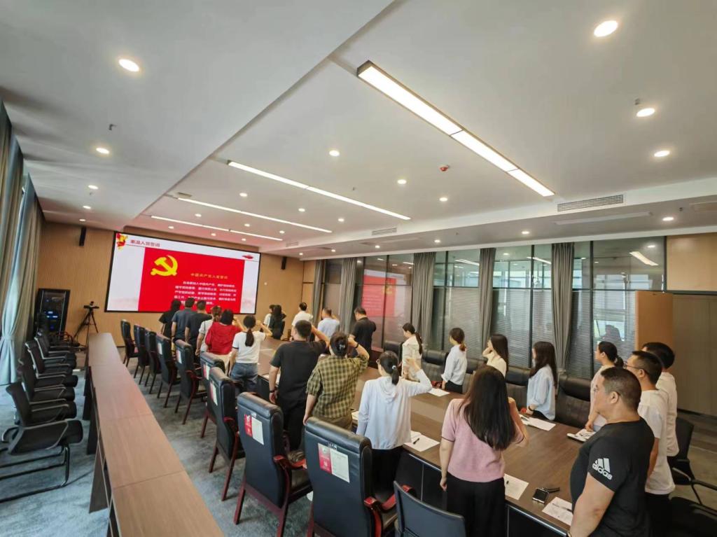 主题党日活动阶段,郭珍珍同志带领全体党员重温入党誓词,廖好雨同志领学《中国共产党纪律处分条例》1-2章,全体党员同志结合工作实际,展开交流讨论。