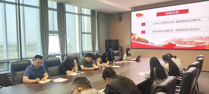 机关党总支书记周平川同志和机关一支部书记侯明丽同志结合贯彻落实中央八项规定及其实施细则精神存在的苗头性倾向性问题讲授专题党课。周平川同志以《以中央八项规定精神为引领 锻造学院机关过硬作风》为题从深刻领会中央八项规定的重大意义、准确把握中央八项规定的核心内容、持之以恒抓好中央八项规定精神的贯彻落实三方面带领党员同志共同学习中央八项规定及其实施细则精神。侯明丽同志以《保持为民务实清廉本色 拒腐防变坚守党员初心》为题从违规收送礼品礼金问题形成的原因和防违规收送礼品礼金反弹回潮、隐形变异的举措两方面引导党员同志们讲党性、重品行、做表率,要求党员同志做到自重、自省、自警、自励,为师生办实事,保持清廉本色,坚守党员初心。