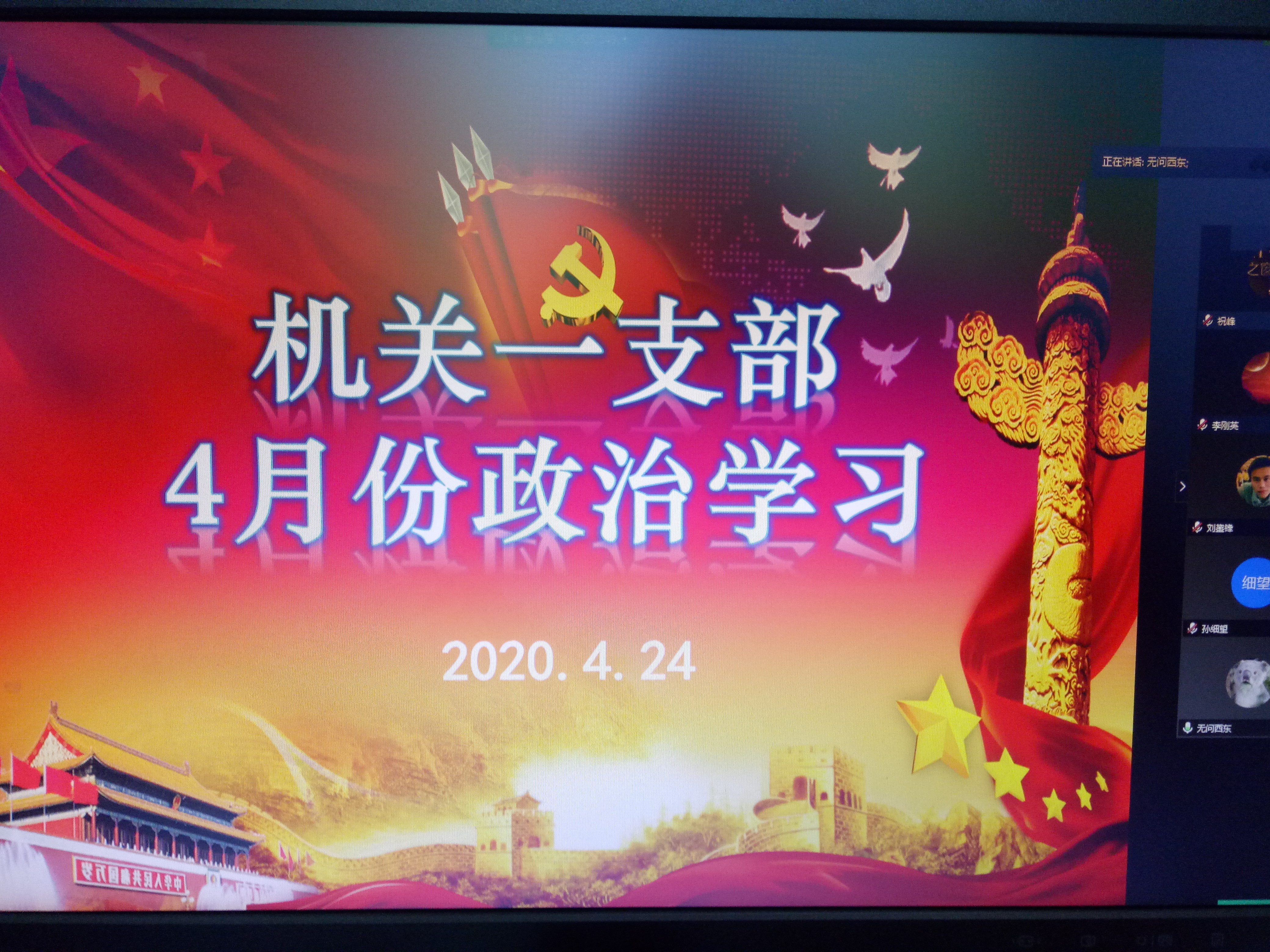 4月24日下午3点,机关一支部组织召开4月份政治学习和支部主题党日活动,会议在腾讯会议平台进行。会议由支部书记吴立娜主持。