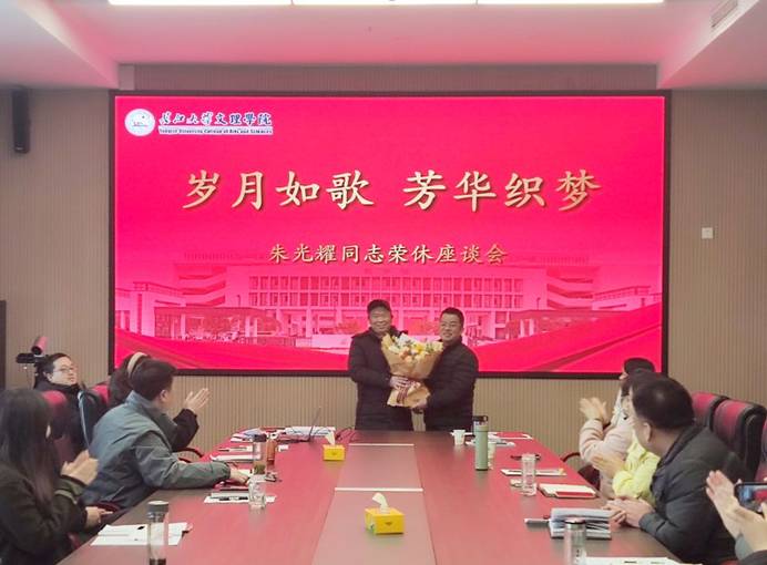 岁月谱就芳华,光阴镌刻文理。党委副书记李则俊诚挚祝贺朱光耀督导光荣退休,并衷心感谢朱督导多年来在学校教学、科研、管理和服务工作中的辛勤付出。他指出,朱光耀督导是我们敬仰的师长和老领导,我们要学习发扬朱光耀督导立足本职、爱岗敬业、求真务实的精神,也希望朱督导退休后能一如既往地关心、支持学校的事业发展,在人才培养、团队建设、学术研究等方面继续贡献力量。
