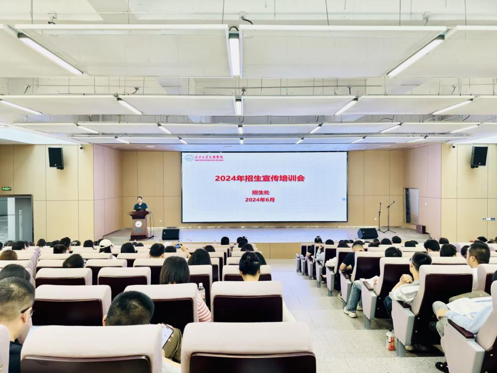 6月20日下午,学校在B-112学术报告厅召开招生宣传动员暨培训会,对高考志愿填报集中时段的招生宣传咨询工作开展动员、部署和培训。全体校领导出席会议,招生委员会成员、各教学单位骨干招生老师等近180人参加会议。会议由经理助理曹骥主持。