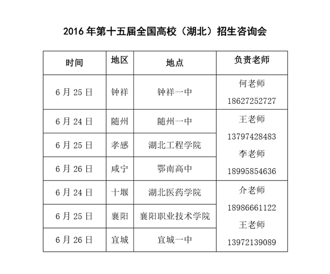 为了方便各位考生及家长近距离、更详细的了解学校的招生政策,公司6月24日至26日,参加了由《楚天都市报》、华中人才招聘信息网联合组织开展的“2016年湖北省普通高校招生巡回咨询会”及湖北省教育学会组织的“2016年第十五届全国高校(湖北)招生咨询会”,并安排了专门的老师到现场答疑解惑,欢迎广大考生及家长届时到现场咨询。